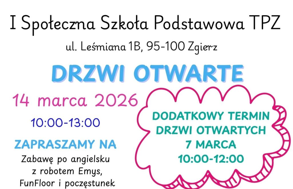 Drzwi otwarte I Społeczna Szkoła Podstawowa TPZ odbędą się 7 i 14 marca